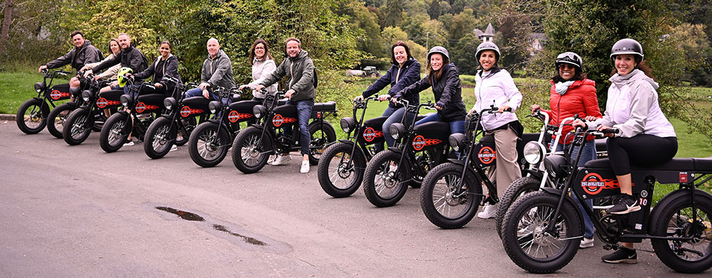 Nous vous invitons à participer à une balade qui vous en mettra plein la vue sur un vélo pas comme les autres! Visitez les paysages fantastiques de la vallée de l’Ourthe, sans effort sur nos vélos (oui oui ce sont des vélos!) à assistance électrique puissants et stylés en mode « route 66 ».